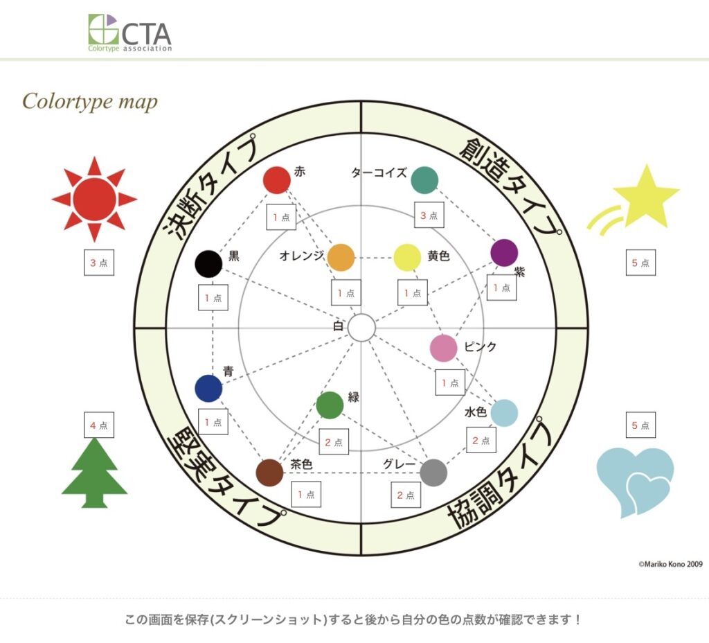 先日読んでた「色づかいで人を見抜くカラー読心術」でカラータイプ気になって調べてみたところ、色彩舎のHPに自分のカラータイプがわかるページがあったので、ちょっとやってみたので、今日はその感想をあげようかと思います。